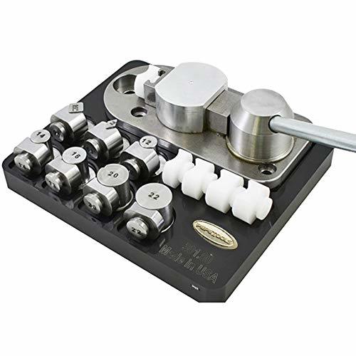 Makes both round and angled bends. Pepe tools super ring bender…. 12, 14, 16, 18, 20,. The pepe with delrin and the durston with nylon. The tool comes included with the steel posts and both steel and delrin dies. The base and handle performs at a […] Each round die has a radiused edge so to minimise any damage to the material being formed. Secure the ring bender to the work bench with the supplied bolt through the bottom threaded. And it's been redesigned and improved to make it powerful enough for fabricating spoon rings.